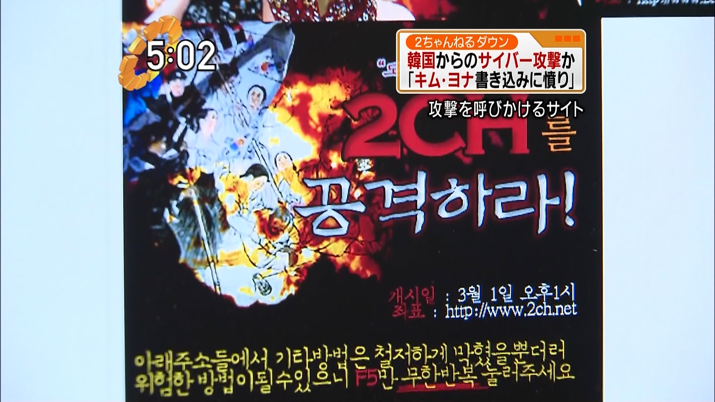 3月1日13:00、予告通り韓国が2chに攻撃開始